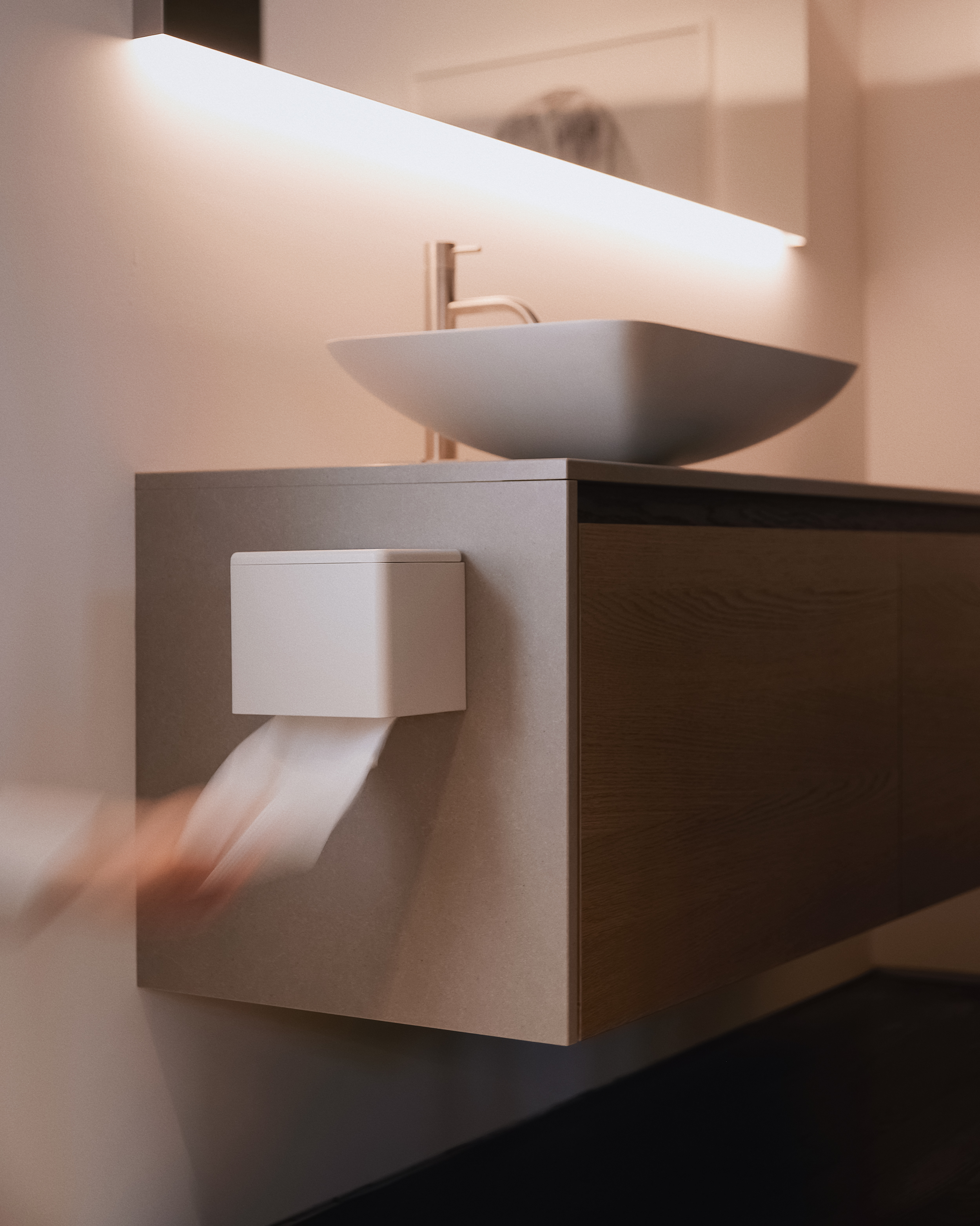 Developing the Wall Unit from the ground up allowed us to truly innovate and not be constrained by legacy and use the right material for the job. We reimagined the entire user experience in terms of Use by the hotel guest but also the Refill experience for the hotel facilities team.